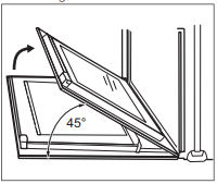 - Sluit de deur totdat deze in een hoek van ongeveer 45° staat.